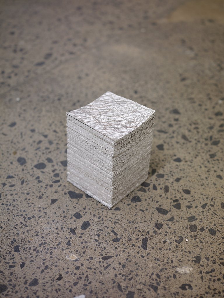 This drawing has been cut into 280 10 x 10mm squares echoing the quarrying of many of the volcanoes themselves. As these fragments disperse, much like the rock taken from the volcanoes, they will scatter to unknown locations and become part of other places.